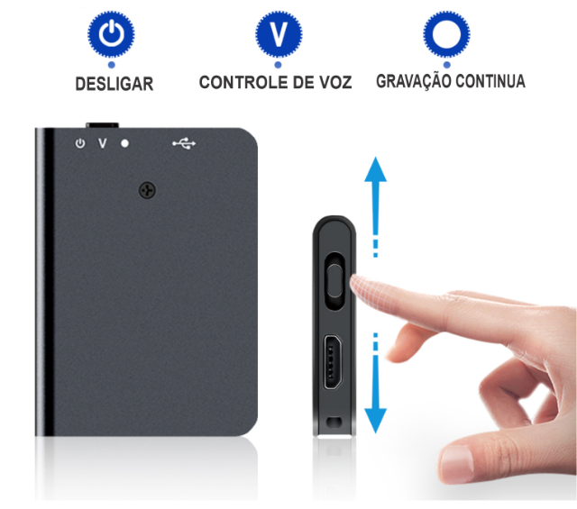 OBS: Além disso, você pode deixar o gravador espião escondido em uma estante de livros ou em sua mesa, e quando as pessoas começam a falar enquanto você não está por perto, então este mini gravador espião automaticamente iniciar a gravação.