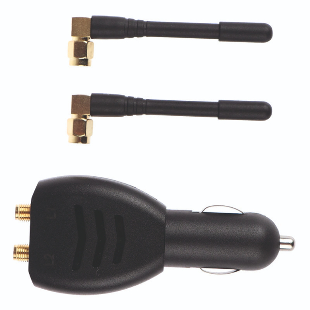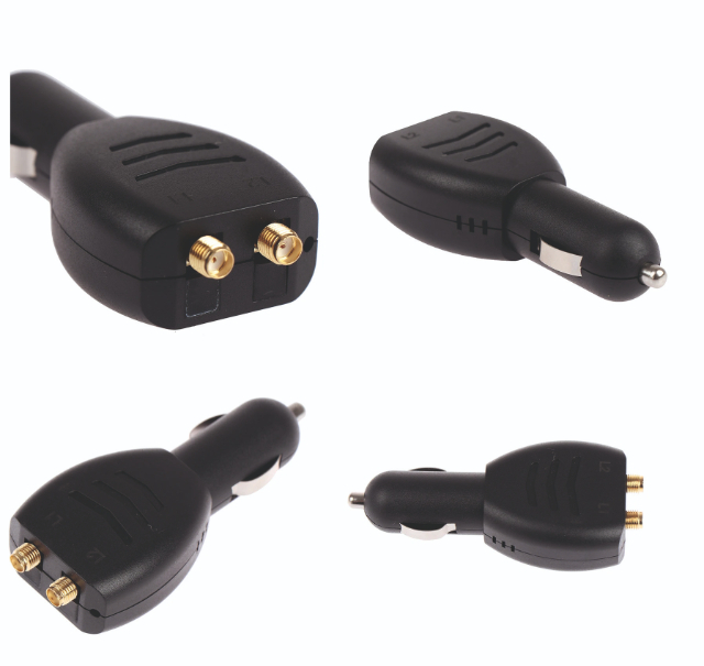 Suporte alimentado por adaptador de cigarro de carro.